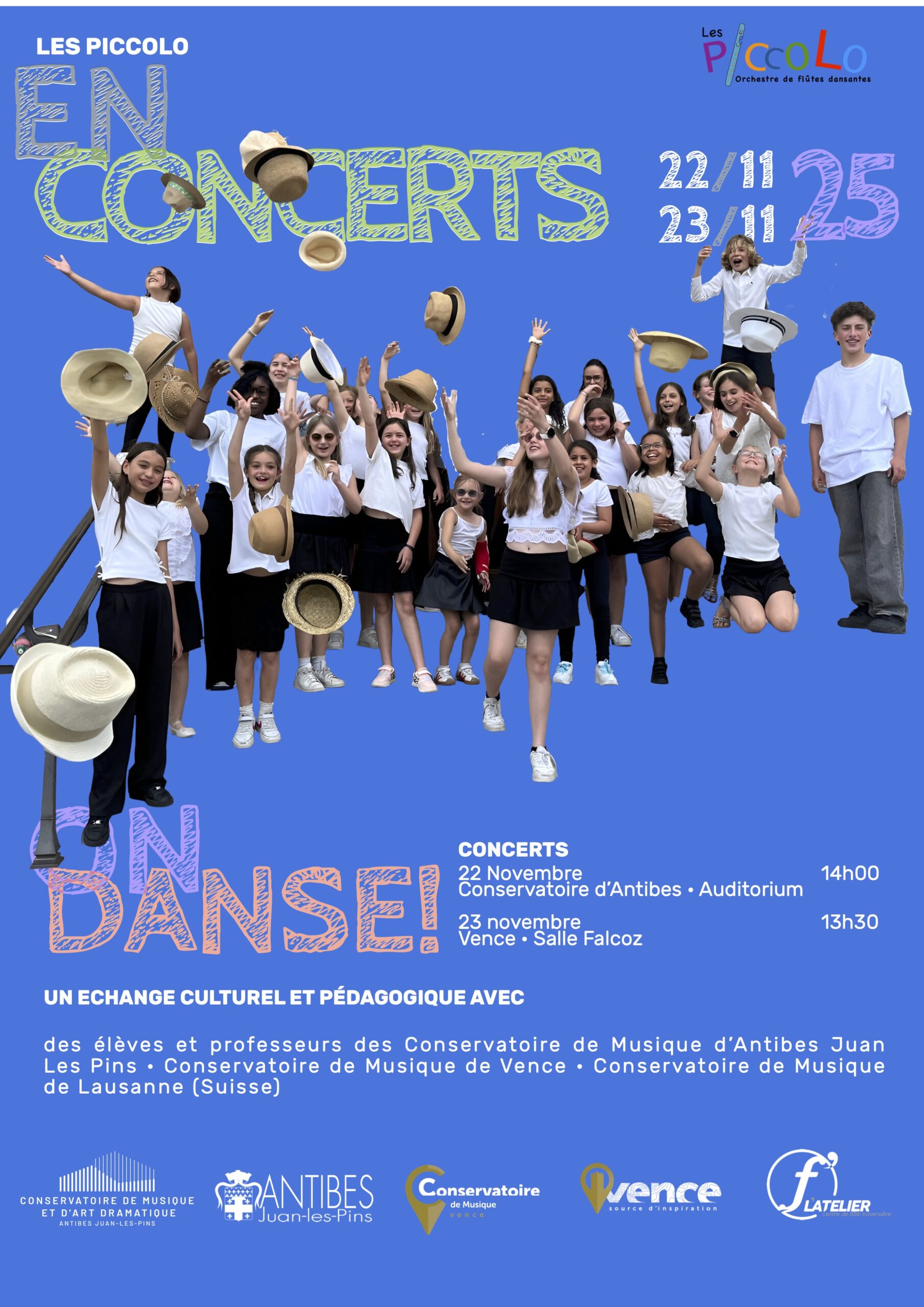Samedi: Conservatoire d’Antibes 10:00-12:30 • Répétition 12:30-13:30 • Pique-nique 14:00 • Concert à l’auditorium du Conservatoire d’Antibes Dimanche: Salle Falcoz, Vence 10:30-12:30 • Répétition 12:30 • Pique-nique 13:30 • Concert à la Salle Falcoz, Vence